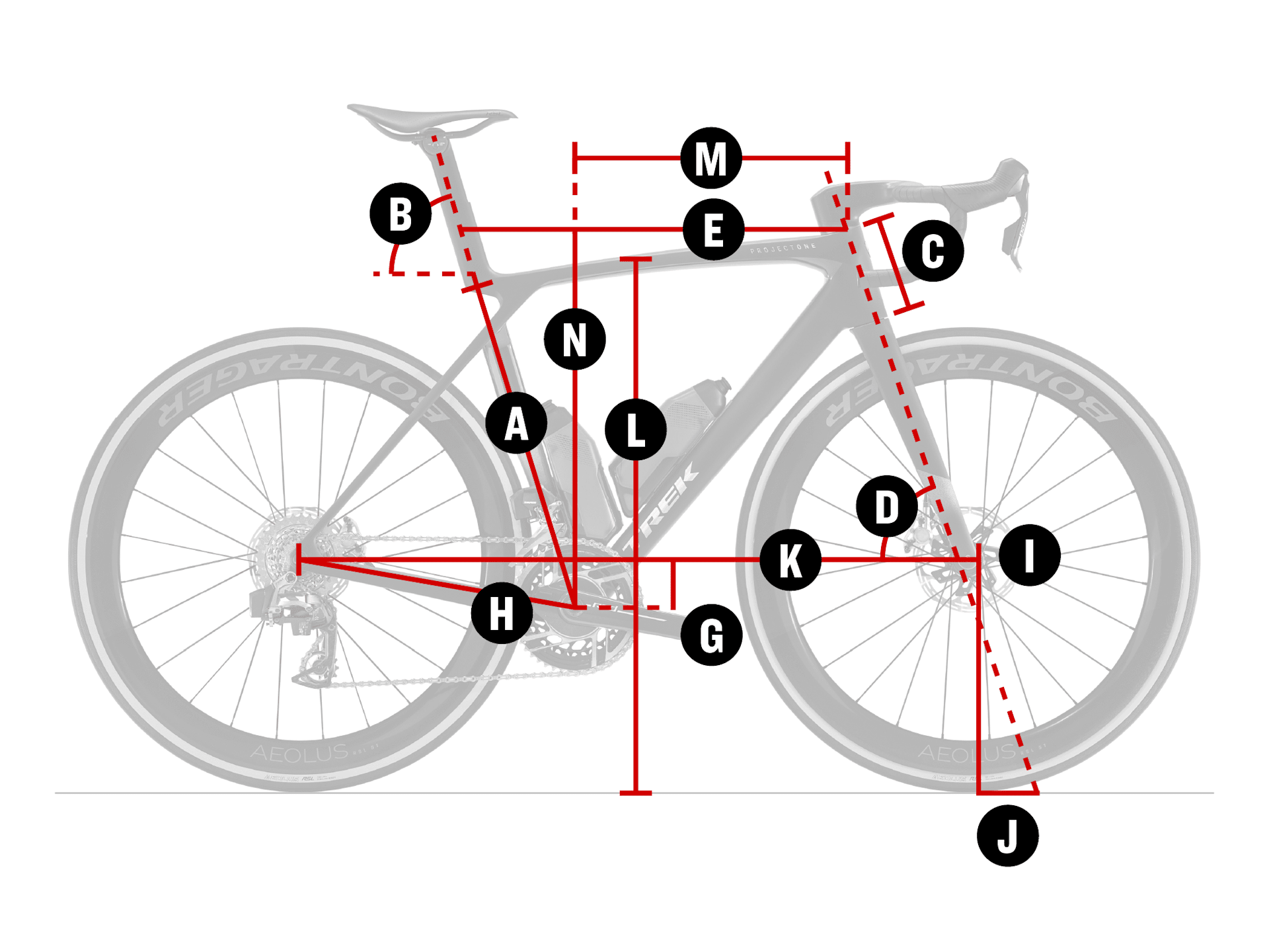 Oznaczenie rozmiaru ramy | Rozmiar kół | A — Rura podsiodłowa | B — Kąt nachylenia rury podsiodłowej | C — Długość główki ramy | D — Kąt główki ramy | E — Efektywna długość górnej rury | G — Obniżenie suportu | H — Długość widełek | I — Przesunięcie | J — Trail | K — Rozstaw kół | L — Przekrok | M — Rozstaw ramy | N — Wysokość ramy | Min. wysokość prowadnic siodełka (z niskim masztem) | Maks. wysokość prowadnic siodełka (z niskim masztem) | Min. wysokość prowadnic siodełka (z wysokim masztem) | Maks. wysokość prowadnic siodełka (z wysokim masztem) |